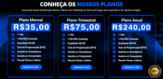Oferecemos uma variedade de planos de assinatura para atender às suas necessidades e preferências. Nossos planos mensais proporcionam a flexibilidade de renovar a cada mês, permitindo que você ajuste sua assinatura conforme sua conveniência. Se você busca um compromisso mais longo e deseja economizar, temos também planos anuais com descontos significativos, proporcionando um excelente custo-benefício.